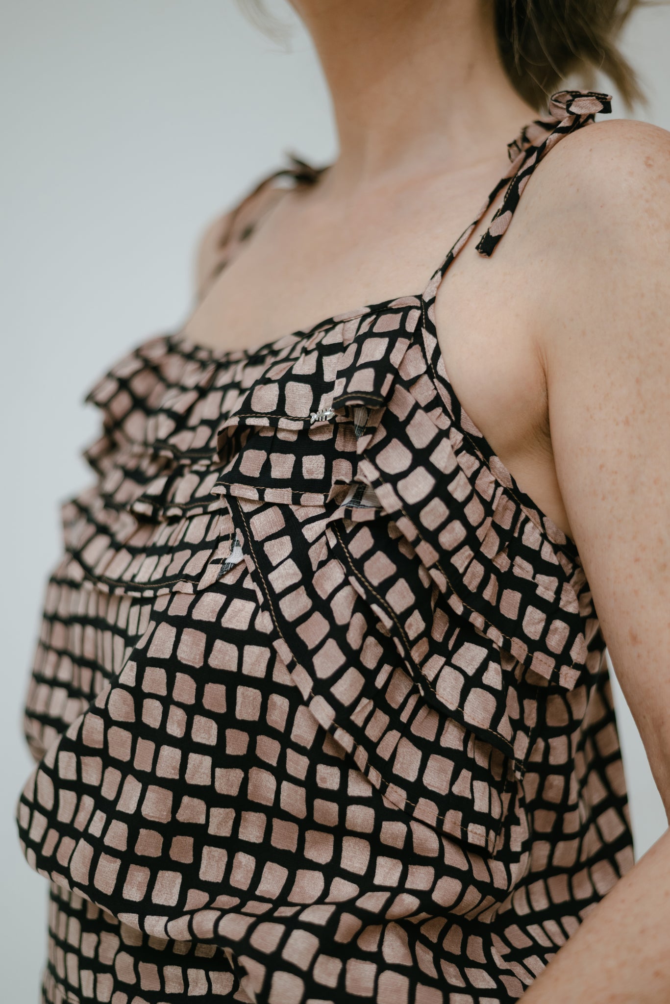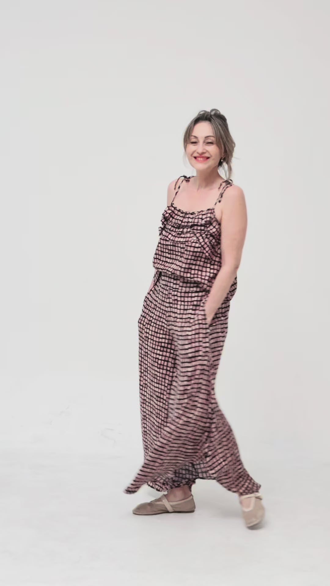 Soft and breezy top with playful layered frills and flattering lightweight pants.